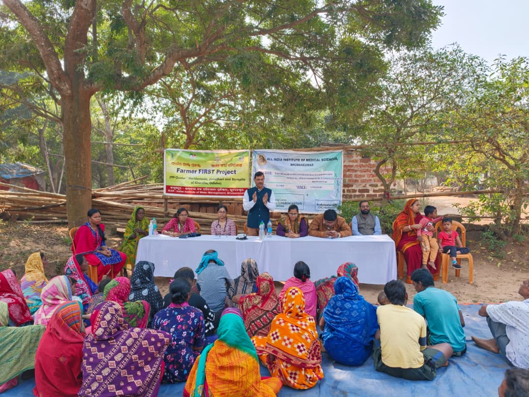 A collaborative Health Awareness and Medical Check up Camp was organized in the IIWM-Farmer FIRST Project adopted Jamujhari tribal village of Khordha on 13th December 2025 in collaboration with AIIMS, Bhubaneswar to observe the ‘International Universal Health Coverage (UHC) Day’, a global annual event to advocate for equitable and affordable healthcare for all, marking the anniversary of the UN's 2012 resolution for UHC as a development priority. At the outset, Dr. Sumanta Kumar Mishra, Principal Scientist & PI, and Dr. Hemanta Kumar Dash, Principal Scientist & Co-PI welcomed the AIIMS medical team and sensitized the participants on the importance of maintaining family health, healthy lifestyle, early detection health disorders and regular health check-ups. The programme was aimed to address common health issues in rural communities, promote preventive healthcare practices and to provide basic medical services to farmers and their families at their doorstep. An eight-member medical team led by Dr. Niraja Guru, Assistant Professor from the Department of Community and Family Medicines, AIIMS, Bhubaneswar conducted general health check-ups, screening of diabetes, blood pressure, random blood sugar, body mass index, age and gender specific health issues and provided need-based medical consultations, and distributed essential medicines free of cost. The camp focused on accessing the benefits of various health welfare schemes of government, health insurance facilities, general health awareness, health complications, early detection of diseases, prevention and treatment strategies. The medical team educated the participants on nutrition, personal hygiene, sanitation, prevention of seasonal illnesses, and lifestyle-related disorders. They were also sensitized on the importance of balanced diets, cleanliness, and timely medical care to prevent long-term health complications.The camp witnessed active participation of about 100 villagers of various ages across gender, who got benefited and appreciated the initiative as a valuable resource in remote tribal areas with limited access to healthcare. The programme demonstrated the project’s commitment to holistic rural development by integrating health awareness with livelihood and social well-being. The camp concluded successfully with strong community engagement and effective coordination by project staff namely, Ms. Isha Anindita Sahoo, SRF and Mr. Firoj Kumar Pradhan, Field Assistant contributing to improved health awareness and overall well-being in the adopted village.