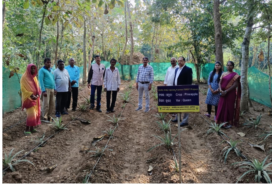 A Farmer-Scientist Interaction Meet cum Field Monitoring Visit was organized on November 26, 2025 under the Farmer FIRST Project (FFP) at the adopted village cluster comprising Haridamada, Jamujhari, and Barapita in Khordha district. The visiting team from ICAR-NAARM, Hyderabad comprising Dr. R. Venkat Kumar, Head, Division of Extension Systems Management, Dr. P. Venkatesan, Principal Scientist & PI (FFP), Dr. Laxman Ahire, CTO and Dr. Kalyani Tirumala, Consultant (FFP), besides Dr. S.K. Mishra, Principal Scientist & PI (FFP) and project staff of the Institute actively participated and contributed in the programme. At the outset, Dr. Mishra welcomed the visiting scientists, project staff, and participating farmers, and provided an overview of the project’s key interventions and achievements since 2022-23. The team visited farmers’ fields and various demonstration units to monitor ongoing activities, which included, bio-fortified & climate resilient HYV kharif paddy demonstrations, vegetable cultivation (like, bitter gourd, tomato, cauliflower, beans, cowpea, etc.), gravity-fed drip irrigation in pineapple, nutri-gardens in the backyard, pond aquaculture, scientific dairy farming, goat farming, vermi-composting, dugout sunken ponds, and mini IFS models etc. The visiting scientists interacted with farmers at each site and appreciated their adoption of improved and climate-resilient agricultural practices and collected their feedback. Dr. Venkatesan and team expressed satisfaction with the field activities on diversified enterprises and technologies, and motivated the farmers, particularly rural youths, to pursue agriculture with an entrepreneurial mind-set to enhance family income and livelihoods. Farmers and farmwomen conveyed their gratitude for the technical and material support provided under the project and assured their continued cooperation. More than fifty participants took part in the event, which was concluded with the expression of sincere thanks by Dr. Mishra. The programme was successfully arranged and coordinated by Ms. Isha Anindita Sahoo, SRF and Mr. Firoj Kumar Pradhan, Field Assistant.