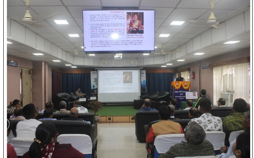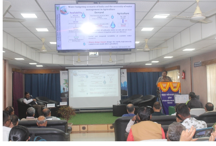The World Soil Day 2025 celebration was organized at ICAR-IIWM, Bhubaneswar, Odisha, on December 5, 2025 with the theme “Healthy Soils for Healthy Cities,”. The Chief Guest for the occasion was Dr. A. K. Nayak, DDG (NRM), ICAR, New Delhi, and the Guest of Honour was Dr. A. Velmurugan, ADG (Soil and Water Management). Due to other commitments, the HDDG could not attend the event in person; however, the ADG Dr. A. Velmurugan participated virtually. Dr. B. S. Das, Professor, IIT Kharagpur, delivered a special lecture on the theme of World Soil Day, also in virtual mode.The meeting started with ICAR song. Nearly 150 persons including scientists and staff of IIWM and students from three different schools i.e. Saraswati Shisu Mandir and Vivekanand Shiksa Sansthan, Bhubaneswar along with their teachers attended this program.In this program 22progressive farmers including 5 female farmers from different parts of Odisha participated as special invitee. The programme began with the invocation of the ICAR song, followed by the symbolic watering of a plant to mark the inauguration of World Soil Day. At the outset, the Director and other dignitaries were formally welcomed by Dr. K. K. Bandyopadhyay, Program Leader and Chairman of the organizing committee, IIWM. This was followed by a presentation by Dr. Bandyopadhyay on the significance of World Soil Day.Dr. A. Sarangi, Director, ICAR-IIWM welcomed the participants and highlighted the significant achievements of the Institute on agricultural water management. Dr. B.S. Das, Professor, Department of Agriculture and Food Engineering, IIT, Kharagpur delivered a talk on the world soil day theme “Healthy Soils for Healthy Cities”. In his address, Dr. Das highlighted that nearly 60% of global soils are either degraded or being used unsustainably. Dr. Das explained that urban soils play a critical role by supporting food production, filtering water, storing carbon, regulating temperature, and sustaining biodiversity. He noted that the theme of World Soil Day calls for transformative actions to reimagine urban landscapes through their soils, ensuring that both people and nature can thrive together, ultimately contributing to the development of healthy, green cities. He also pointed out that the expansion of built-up areas leads to biodiversity loss, reduced agricultural production, increased pollution, and restrictions on natural energy and material flows within ecosystems. In conclusion, he advocated the use of DRS–DSM–HRS approaches for sustainable urban landscape planning and management. Dr. A. Velmurugan, ADG (Soil and Water Management), ICAR gave his remarks on deep interdependence between soil and water management and urged that they should be managed in holistic manner. He emphasized the role of soil health in the One health concept. He also told that in the FAO summit of soil scientists, Soil drought has been highlighted as a major problem. A farmers-scientists interaction meeting was held under the chairmanship of Dr. S.K. Mishra, Programme Leader, On-farm Technology Dissemination, ICAR-IIWM, Bhubaneswar.Then speech and painting competition was held among the students on the World Soil Day theme.These activities were followed by a visit to the advanced soil and plant science laboratories at IIWM, where students had the opportunity to explore cutting-edge research and technologies. The farmers visited the Institute’s Technology Park, where they were introduced to innovative technologies aimed at improving farming practices. The progressive farmers were felicitated and the students who won prizes in different competitions were rewarded on this occasion. The meeting ended with vote of thanks to the chief guest and all the participants followed by recitation of National Anthem.