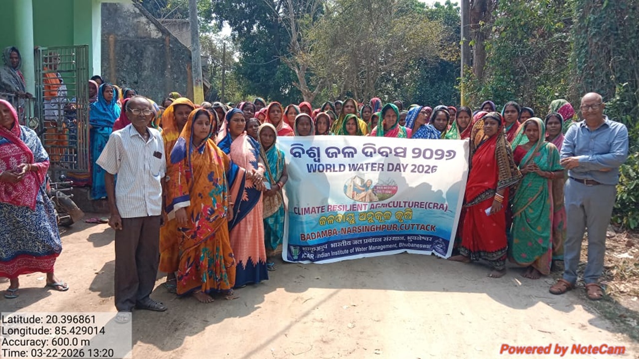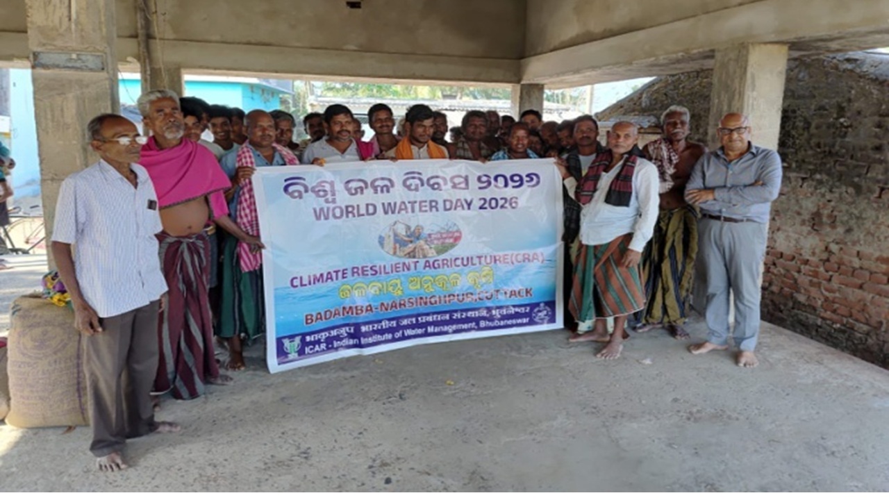 ICAR-Indian Institute of Water Management (IIWM) celebrated the 34th World Water Day (WWD) at the canal automation site at DarpanarayanPur Minor Irrigation Project (MIP) in Nayagarh district of Odisha on 22nd March 2026. While inaugurating the canal automation system, the Chief Guest Hon’ble Speaker of Odisha Legislative Assembly, Smt. Surama Padhy mentioned that canal automation will save appreciable quantity of water which can be used for enhancing cropping intensity, uniform distribution of water in different reaches of the command and coverage of more cropped area during the rabi season. Such technologies will assist in judicious use of water for enhancing agricultural water productivity. Smt. Madhumita Rath, Collector and District Magistrate of Nayagarh district, Odisha graced the programme as Guest of honour and highlighted the significance of world water day with mention about the theme “water and Gender” and also the slogan “where water flows the equality grows”. Smt Rath also focused on use of IoT and integrated sensing systems for supply of irrigation water to farm land besides replication of these technologies in different commands of the Country. Er. P.C. Rath, Chief Engineer, Department of Water Resource, Govt. of Odisha was the Guest of Honour and in his address he emphasized that it is the first of its kind in the State of Odisha implemented in a minor irrigation command. Earlier Dr. A. Sarangi, Director of ICAR-IIWM welcomed all guests and briefed about canal automation project. Dr Sarangi mention that the Canal Automation System installed in the MIP is a successful collaborative model with involvement of ICAR-IIWM, Department of Water Resources, Govt. of Odisha and Engineers and staff of MIP, Sukrabehera Memorial Water User Association, DarpanarayanPur with hardware and software partner Mechatronics Systems Pvt. Limited, Pune besides involvement of the scientists under Agri.-Consortia Research Project (CRP) on Water Scheme of ICAR. Dr Sarangi also mentioned that the automation system in the MIP would ensure crop water demand based supply of irrigation water to enhance agricultural water productivity, bring more area under production of rabi crop due to stored water in the reservoir and assist in crop diversification and enhanced farm income. Dr. S.K. Jena, Pr. Scientist and Coordinator of AgriCRP-Water also highlighted the significance of canal automation for enhancing agricultural water productivity. Eight publications including the bulletins and leaflets on the canal automation were released by the guests and distributed to participants. The progressive farmers and beneficiaries of three villages under the MIP were also felicitated by the Chief Guest for their significant contribution in farming and enhancing agricultural water productivity. Dr. R.K. Panda, Pr. Scientist and Principal Investigator of the project proposed a vote of thanks. The event was attended by about 700 participants including scientists, technical staff, water resources department officials, media personnel besides farmers and beneficiaries of MI command. The WWD-2026 was also celebrated at two more locations in climate resilient villages developed under the RKVY Project at Badamba-Narsinghpur of Cuttack district in Odisha. In the first meeting at Naranpur village about 180 farm women participated and deliberated their roles in agricultural water management signifying the theme “water and gender”. In another meeting at Haritha-Manpur village, which is popular for vegetable cultivation, more than 150 farmers attended and shared the knowledge on water management for vegetable production. Dr D.K. Panda, Principal Scientist, ICAR-IIWM and PI of the RKVY project organized these events in two villages.
