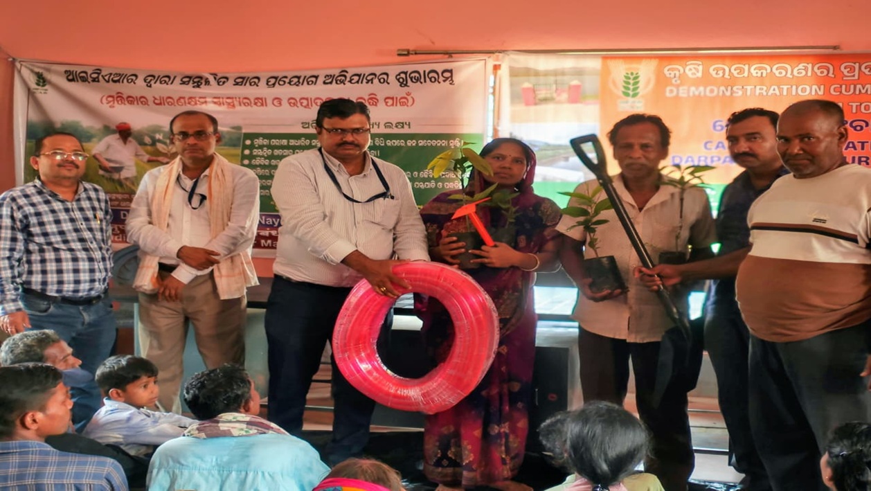 The distribution of sprinkler units and agricultural tools to Scheduled Caste farmers of Bapujipalli, Darpanarayanpur, and Kendudipi villages in Nayagarh district of Odisha was successfully conducted on 09.04.2026. The initiative aimed to enhance on-farm water use efficiency and promote improved agricultural practices among small and marginal farmers. Sprinkler systems were provided to facilitate efficient irrigation, particularly in areas facing water constraints and uneven rainfall distribution. Alongside, essential agricultural tools were distributed to reduce labor drudgery and support timely field operations. The program also served as a platform to sensitize farmers about scientific water management and the benefits of modern irrigation techniques. Overall, the intervention is expected to contribute to improved crop productivity, better resource utilization, and enhanced livelihoods in the target villages.