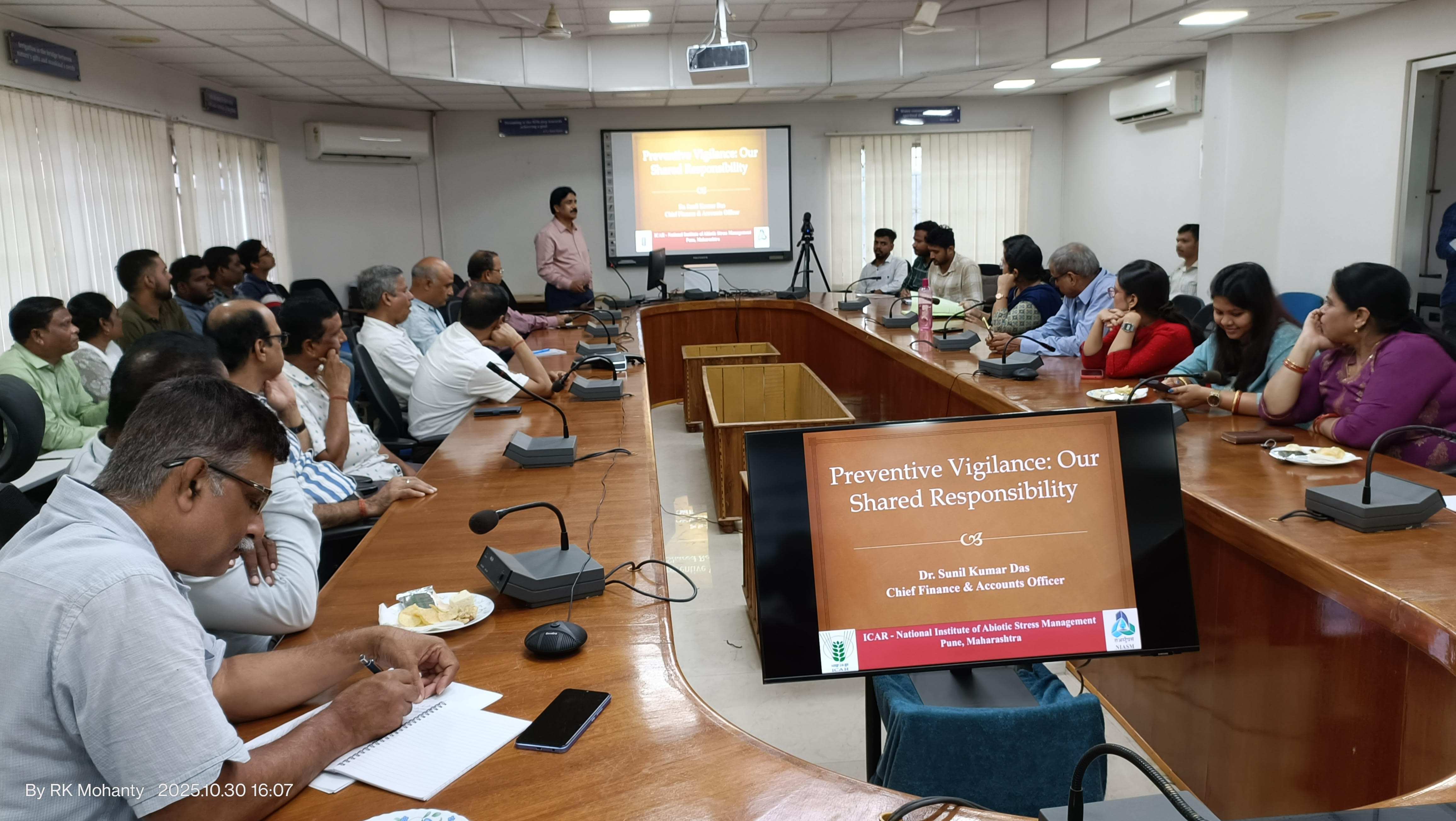Guest lecture by Dr. S K Das Chief Finance Officer of ICAR-NIASM was organised on Vigilance - Our Shared Responsibility at ICAR-IIWM 0n 30-10-2025