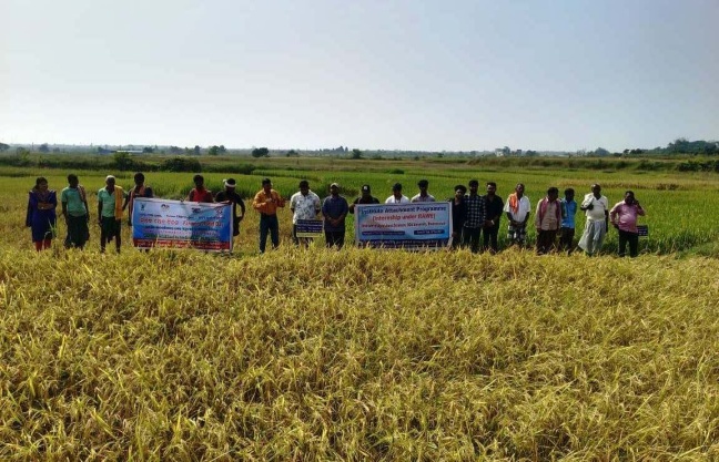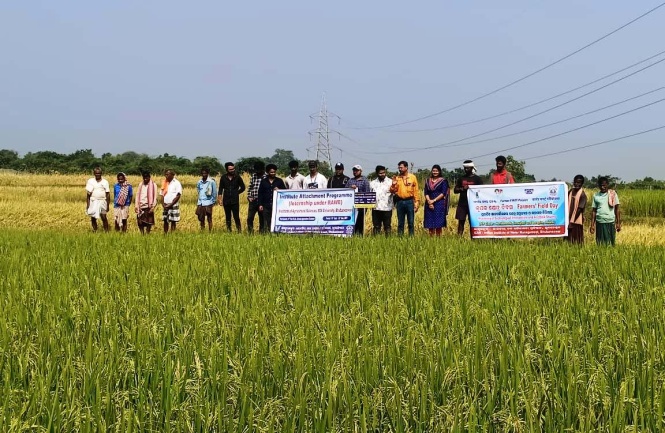 One ‘Farmers’ Field Day’ was conducted in the Farmer FIRST Project adopted Haridamada village in Khordha on 7th November, 2025 involving about forty beneficiary as well as non-beneficiary farmers, 4th year B.Sc. (Ag) students from SOA University, project scientists and staff. The participants visited the kharif demonstration fields of HYV varieties namely, ‘CR Dhan 409’ (a shallow lowland rice variety of 160 days duration); ‘CR Dhan 801’ (a medium lowland climate smart rice variety of 145 days duration, resistant to both drought and submergence); and ‘Pooja’ (a shallow lowland fine grain rice variety of 150 days duration) covering an area of about 100 acres in the adopted cluster comprising Haridamada, Jamujhari and Barapita villages. Since, all the varieties were either at reproductive or maturity stages, the students and farmers could clearly observe and critically evaluate the performance of the demonstrated rice varieties vis-à-vis other farmer grown varieties in the cluster with various physical parameters like, plant height, no. of heels/mt2, no. of tillers/heel, no. grains/panicle, diseases-pest infestation, and robustness of crops etc. The students interacted with the farmers and were exposed to water, nutrient and overall crop management practices for getting higher water and crop productivity. All the participants were oriented on maintaining seed purity of harvested crops with proper rouging at critical stages and post-harvest management practices in order to qualify to standard seed production protocols. This would help the farmers to sell the produce as seeds at much higher price (50-100%) over and above the MSP. Besides, the participants also visited the nearby ‘One-acre Natural Farming Model’ demonstration plot with rice variety ‘Kalachampa’. They were exposed to Natural Farming protocols of growing crops like, preparation and application of Beejamrut, Ghanamrut (using fresh dung & urine of indigenous cows, jaggery, live soil etc) for nutrient requirements and Bhahmastra for controlling diseases and pests. Later, the participants were exposed to the demonstrations on ‘Applications of Imaging Drone in Agriculture’ at the nearby ICAR-IIWM Research Farm at Mendhasal. The programme was participated and coordinated by Dr. S.K. Mishra, PS & PI; Dr. D. Sethi, Scientist & Co-PI; Ms. Isha Anindita Sahoo, SRF and Mr. F.K. Pradhan, Field Assistant besides the active participation of farmers and students. Some of the action photographs of the day are given below.