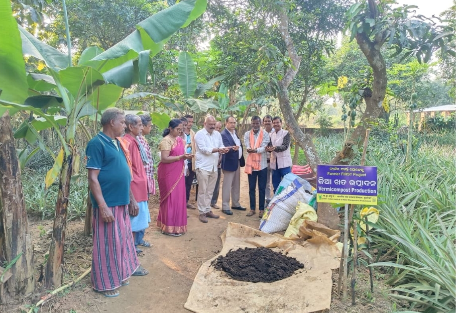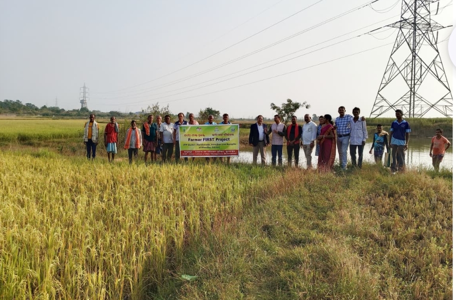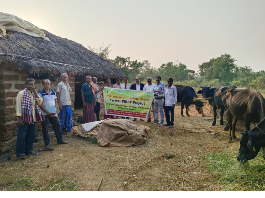 A Farmer-Scientist Interaction Meet cum Field Monitoring Visit was organized on November 26, 2025 under the Farmer FIRST Project (FFP) at the adopted village cluster comprising Haridamada, Jamujhari, and Barapita in Khordha district. The visiting team from ICAR-NAARM, Hyderabad comprising Dr. R. Venkat Kumar, Head, Division of Extension Systems Management, Dr. P. Venkatesan, Principal Scientist & PI (FFP), Dr. Laxman Ahire, CTO and Dr. Kalyani Tirumala, Consultant (FFP), besides Dr. S.K. Mishra, Principal Scientist & PI (FFP) and project staff of the Institute actively participated and contributed in the programme. At the outset, Dr. Mishra welcomed the visiting scientists, project staff, and participating farmers, and provided an overview of the project’s key interventions and achievements since 2022-23. The team visited farmers’ fields and various demonstration units to monitor ongoing activities, which included, bio-fortified & climate resilient HYV kharif paddy demonstrations, vegetable cultivation (like, bitter gourd, tomato, cauliflower, beans, cowpea, etc.), gravity-fed drip irrigation in pineapple, nutri-gardens in the backyard, pond aquaculture, scientific dairy farming, goat farming, vermi-composting, dugout sunken ponds, and mini IFS models etc. The visiting scientists interacted with farmers at each site and appreciated their adoption of improved and climate-resilient agricultural practices and collected their feedback. Dr. Venkatesan and team expressed satisfaction with the field activities on diversified enterprises and technologies, and motivated the farmers, particularly rural youths, to pursue agriculture with an entrepreneurial mind-set to enhance family income and livelihoods. Farmers and farmwomen conveyed their gratitude for the technical and material support provided under the project and assured their continued cooperation. More than fifty participants took part in the event, which was concluded with the expression of sincere thanks by Dr. Mishra. The programme was successfully arranged and coordinated by Ms. Isha Anindita Sahoo, SRF and Mr. Firoj Kumar Pradhan, Field Assistant.