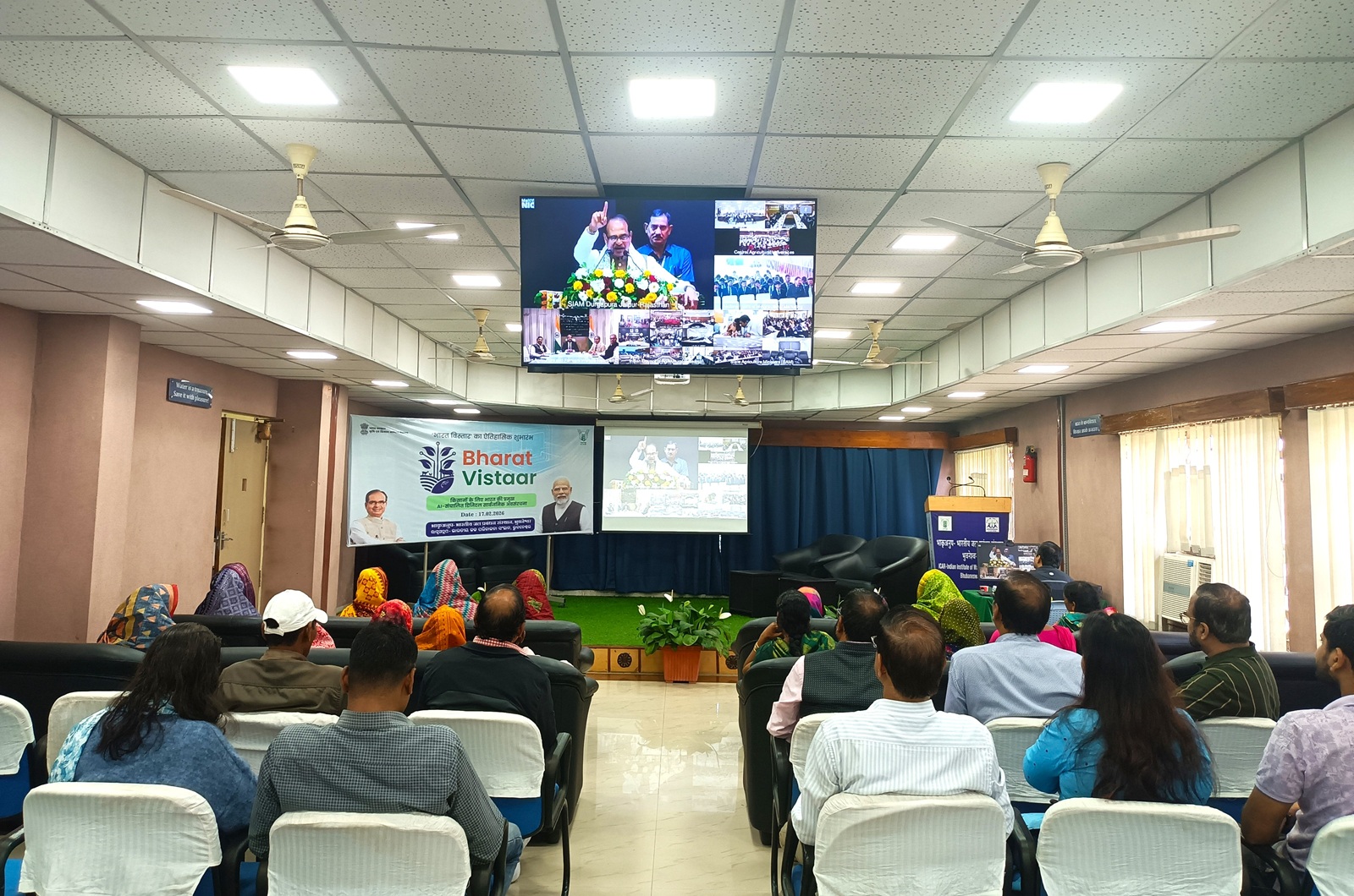 ‘Bharat-VISTAAR’ AI Tool was nationally launched today, i.e., on 17th February 2026 in Jaipur by the Hon’ble Union Agriculture & Farmers Welfare Minister Shri Shivraj Singh Chauhan in the presence of the Hon’ble Chief Minister of Rajasthan Shri Bhajanlal Sharma. Bharat-VISTAAR’ (Virtually Integrated System to Access Agricultural Resources) is a single digital doorway for farmers and is an AI-powered unified digital system that gives farmers scheme information, weather, mandi prices, crop advice, and grievance services in farmers’ own language through mobile or a simple phone call. It is a multilingual AI tool that integrates the AgriStack portals and the ICAR package on agricultural practices with AI systems to enhance farm productivity, improve farmer decision making and reduce risk through customized advisory support, which was proposed in the Union Budget 2026-27. While addressing lakhs of farmers and other stakeholders across the country through hybrid mode, Hon’ble Union Agriculture Minister mentioned that ‘Bharat-VISTAAR’ would enhance farm productivity, lead to better farmer decision making and reduce risk through customized advisory support for the farmer. He added, with ‘Bharat-VISTAAR’, farmers need not depend on different offices, websites, apps, or middlemen to get all such information as it becomes the single source of all relevant information for famers in their own language and through text and voice based conversation. Farmers can get information about 10 major Central schemes including PM-KISAN, PM Fasal Bima Yojana (PMFBY), Soil Health Card (SHC), Per Drop More Crop, PM Krishi Sinchayee Yojana, PM Annadata Aay Sanrakshan Abhiyan and Kisan Credit Card. ICAR-IIWM, Bhubaneswar organized the Live Webcast of this National Launching programme, followed by a Farmer-Scientist Interaction Meet and Framers’ Exposure Visit, witnessed by over 110 participants including farmers, farm women, and scholars besides staff of the Institute. Addressing the gathering, Dr. R.K. Panda, Director (I/C) mentioned, ‘Bharat-VISTAAR’ will be available 24-hours as a ‘digital agriculture expert’ in two ways. Farmers can access it in three easy ways (i) Mobile App on Google Play Store, (ii) Web interface link (works in a similar manner as an App) and will be available on the websites of the Ministry of Agriculture and (iii) Telephone calls by dialing 155261 (even from a basic phone). At the outset of the programme, Dr. S.K. Mishra, Principal Scientist & Convener welcome the participants and briefed about the programme, while Dr. H.K. Dash Principal Scientist & Co-convener moderated the event and proposed vote of thanks.